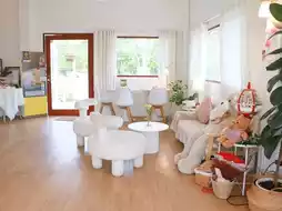🍌"HANAAA Cafe Khaoyai 🌸 Hana Cafe Khaoyai" is a large white cafe. The lower floor is decorated in a Zen style. The upper floor is decorated in a cute style. The atmosphere is good. Choose the style you like.