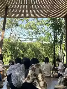 It is a cafe decorated in Japanese style. There is a Japanese garden in the middle of a tamarind tree garden. The atmosphere of the shop is very good. The vibe is very good. But we went during a time when there were a lot of people, so it was a bit chaotic. But overall, I quite like the feel here.