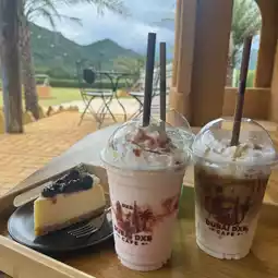A Khao Yai cafe that feels like Dubai has been transported to this ancient city, surrounded by nature. The atmosphere is great for content creators and photography enthusiasts, as there are many photogenic spots. Delicious drinks and desserts are available, with a wide selection.
