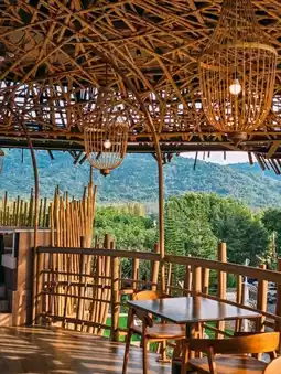 Jamii Coffee House is a popular cafe in Khao Yai, located inside the Dusit D2 Khao Yai Hotel. It stands out with its cave-inspired design, but still maintains a comfortable and modern feel. There are large sofas and coffee tables that are perfect for relaxing or socializing. There are also several comfortable seating areas to choose from, making it feel relaxing and private. 🛖 Another highlight that many people talk about is Jamii Cafe, which is located downstairs from the main restaurant. The upper floor is a large bird's nest-style restaurant for dining, while the lower floor is a small cafe that feels like you're in a cool cave. There are a variety of desserts and ice creams to choose from. Some reviews even say that in the evening, the atmosphere changes to a chill-out bar with a live saxophone, creating an incredibly romantic atmosphere, perfect for a date. 🧁Menu and drinks