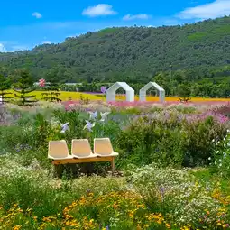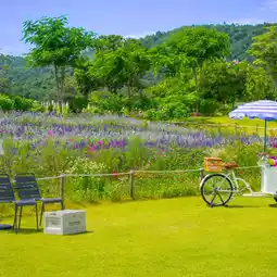 #Get a discount without relying on luck. A cafe that looks like you've been transported to a dream world. Very beautiful and sweet. Flowers are still blooming beautifully. Hurry up and visit #Khao Yai. There are both indoor and outdoor zones. A garden of various flowers, purple, pink, and yellow mixed together. There are large shady trees to sit and serve coffee, drinks, and desserts. For those who love taking pictures, come dressed beautifully. You won't be disappointed.