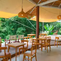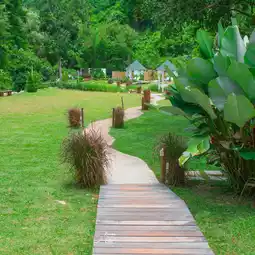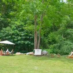 #Let's talk about traveling Khao Yai cafe, camping style, island-like atmosphere, surrounded by streams. lle Cafe & Camping Khaoyai is an open-air cafe with a lawn to sit and chill, listening to the sound of the stream, very quiet and shady. There are coffee drinks, food, desserts to choose from. There are many beautiful photo spots. And this place also has accommodation.