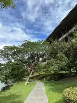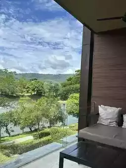 The rooms are truly expansive, featuring minimalist yet classy decor. There's even a small kitchen area for light cooking and a balcony where you can relax in the evening. The shared facilities are top-notch, including an outdoor swimming pool, a fitness center, a café, a pickleball court, and a restaurant with breathtaking views.