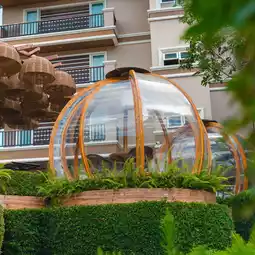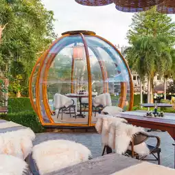 The highlight of the 𝙇𝙖𝙘𝙤𝙡 𝘿𝙤𝙢𝙚 𝘿𝙞𝙣𝙣𝙞𝙣𝙜 is the restaurant area. They serve European and Thai cuisine, and it's absolutely delicious. I highly recommend it for special occasions. You'll definitely be impressed. Enjoy your meal in the glass dome. The surrounding atmosphere is breathtakingly beautiful, and the nighttime lighting is breathtaking.