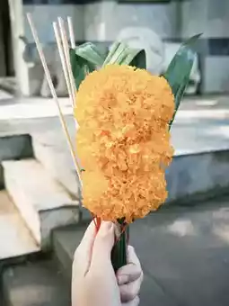 • 🔥 A striking feature is the brick-red Thai-style wooden shrine, standing amidst nature. Visitors are provided with incense, candles, and offerings to light for good fortune and safety throughout their journey. 🚗