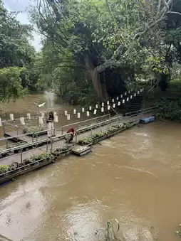 A riverside restaurant with a serene atmosphere, serving delicious Thai cuisine. Perfect for a relaxing stop before heading uphill.