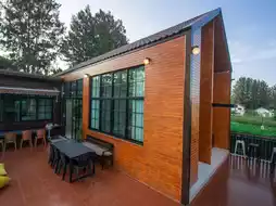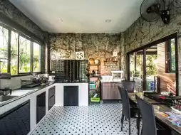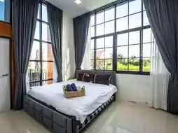 Pool villas with a foreign vibe at Hug Khao, Khao Yai. Invite your family or group of friends to relax here, as it is fully equipped with a large private saltwater swimming pool, a fully equipped kitchen, spacious balconies, a rooftop with mountain views, spa facilities, colorful lighting, a slide, and karaoke. There's also a garden area for taking photos or having a picnic. This place provides everything you need in one location.
