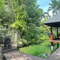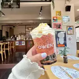 🦋 Owen's Room, an all-day dining cafe and restaurant with a super chill atmosphere and pet-friendly atmosphere. The spacious, glass-enclosed building offers a truly stunning atmosphere. You can enjoy both indoor and outdoor seating, and there's a pond in the center with koi fish that you can feed. The restaurant offers a wide variety of Thai and international dishes. They also offer brunch, drinks, and a variety of delicious breads and cakes. You'll definitely want to try them! There are also plenty of photo spots around the restaurant. You'll definitely get plenty of photos to take home.
