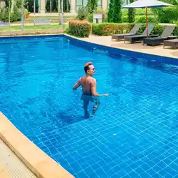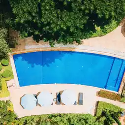 including a swimming pool, restaurant, and cafe