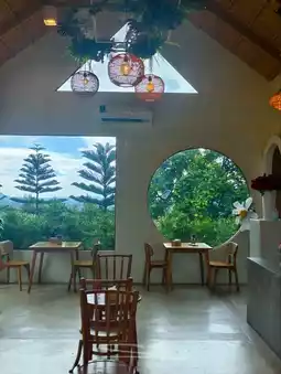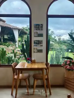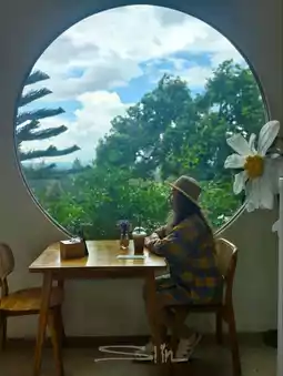 This cafe is a must-visit. It's a landmark in the heart of Khao Yai, surrounded by mountains and offering 360-degree views. Enjoy the cool breeze and a colorful flower garden. Bring your outfits! You'll definitely get some great photos to share on social media. The interior is a vibrant and beautiful flower garden with plenty of photo spots. A must-see is the cliffside seating area, offering breathtaking mountain views. Considering the entrance fee, it's well worth it. They offer cakes and cold drinks. There's plenty of seating available, including both air-conditioned and outdoor areas. The staff are very welcoming and offer photo accessories for rent. They also offer ATV rentals. If you're visiting Khao Yai this winter, don't miss this! No need to go far, Khao Yai is just nearby.