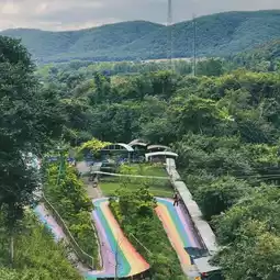 Thong Somboon Club, a hub for fun activities in Pak Chong-Khao Yai, is a must-visit for adventurers and photo enthusiasts. 🏎️ Set on a 300-rai plot, you'll need to take the tram to the park. Pass the first check-in point, a heart-shaped tree, where everyone checks in except us. Haha...it's so hot! Inside, there's a plethora of activities, including ATVs, luges, aerial roller coasters, cable cars, drifting cars, go-karts, and BB guns. The lines for popular activities tend to be long.