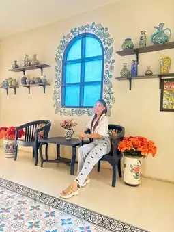 La Reina Maroc Hotel, La Reina Maroc Hotel - Pak Chong, Khao Yai, 5-story accommodation, swimming pool, decorated with brightly colored patterns, Moroccan style. Opposite the guest room building is a small cafe with beading and coloring activities, cool air conditioning, comfortable seating, spacious parking. #visitKhaoYai