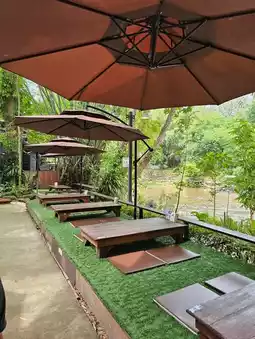 This riverside restaurant and cafe is surrounded by forest and next to a small waterfall. There are plenty of photo spots. There are both indoor and outdoor seating areas, perfect for a relaxing getaway.