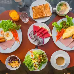 balconies for relaxing. Inside, there's a sitting area with a comfortable bed and all the amenities you need. The restaurant also offers a variety of delicious drinks. You must try it! It's also pet-friendly!