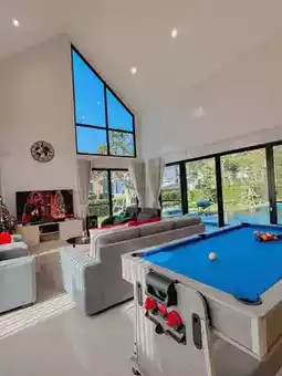 The highlight is the indoor living area and pool table, which will keep everyone entertained all day long. 🎱🍹 Meals are also fully stocked, with a fully equipped kitchen and a chill BBQ area. 🍖🥗 A visit here promises fun, relaxation, and unforgettable memories.