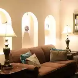 • Letti, a room decorated with an outdoor garden accent, has a queen-size bed and sofa.