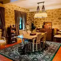 • Stella, the smallest room but beautifully decorated, emphasizing romantic elegance, a queen-size bed, and a balcony with mountain and sunset views.