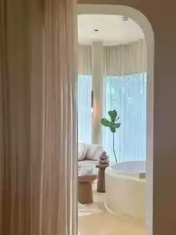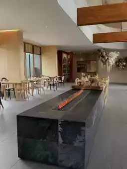 Modern, minimalist style with large windows for a breathtaking view of nature. The decor is elegant and the rooms feature materials that exude a sense of luxury.