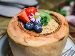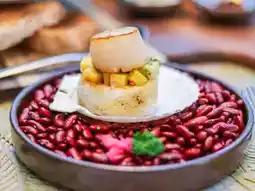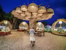 Lacol Dome Dining: Enjoy a special dinner under the stars in a 360-degree transparent dome. This semi-fine dining experience is truly the highlight of the place. Immerse yourself in a romantic atmosphere, immerse yourself in the ambiance, and experience the breathtaking views. Enjoy beautiful drinks in a transparent dome, complete with air conditioning and portable speakers. The menu focuses on Western dishes. Start with a Cheese Board featuring a variety of cheeses, fruits, and ham. Enjoy Hokkaido Scallop served on bread, served with sweet and sour fruits. Healthy Salmon Salad: beautifully presented salmon salad with a variety of vegetables, including pomelo, avocado, lemon, and fragrant grilled salmon. Pesto Salmon: a rich sauce served with salmon. Lacol Ribeye/Lacol Wagyu Rumb: two large, thick steaks, each cut of meat, served with mashed potatoes, various stir-fries, and fried onions. Both dishes are delicious. Finish with Coconut Crème Brulee, served in a coconut. It was another truly memorable meal, both the food and the atmosphere. It was a great value.