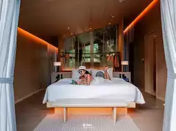 The bedroom is spacious and the bed is soft and comfortable. It's so healing.