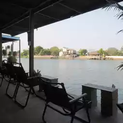 A riverside cafe in Lat Kret with a great atmosphere, a stunning 180-degree view, a long wooden bridge to the river, and a unique photo spot for sure. 🥤🥰🏝️