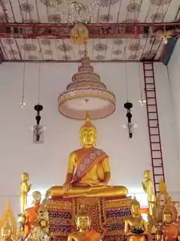 ✨️Wat Sao Thong Thong Walk🚶♀️ about 300 meters past Wat Pai Lom. This temple has a starfruit-shaped pagoda, a twelve-sided pagoda.