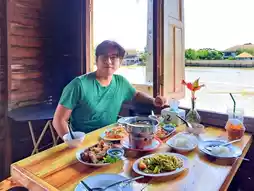 🪵 The restaurant is located on the banks of the Chao Phraya River. The cool breeze blows all day long. You can see a full view of the river. Sit and enjoy taking pictures from every angle.