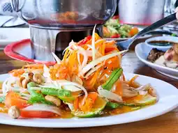 Thai papaya salad, sweet and sour, well-rounded flavor