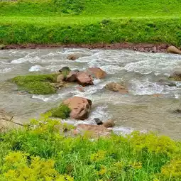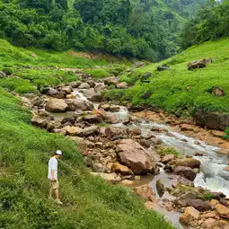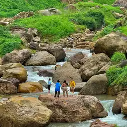 🌳 The boat will take us to 2 points. The first point is the innermost source of the dam, a wide green grassland with a canal on the side. If you walk in deep, it will be beautiful. The other point is Khao Chong Lom Waterfall, a waterfall stream, flanked by mountains, with piles of rocks that look strangely beautiful. There are green grasslands all around.