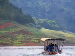📍Located in the Khun Dan Prakan Chon Dam in Hin Tang Subdistrict, the area features a narrow canyon between lush mountains, lined with forests and grasslands, gradually rising uphill to the lush green forest above. The atmosphere of Khao Chong Lom varies seasonally. From June to September, the water level in the Khun Dan Prakan Chon Dam drops, and with the rain, the grasslands return to lush green. Other areas within the dam reveal streams and rock formations, revealing the beauty hidden beneath the water. Visitors must take a boat to reach the site. The first point is "Upstream," a natural canyon. When the water level recedes, the view reveals the beautiful scenery of the grasslands on both sides of the hills. A stream flows from the upstream forest into the Khun Dan Dam Lake. At the upstream, a path follows the stream and branches off to a hillside. As you walk further, you'll reach an S-shaped cove. The second point is "Khao Chong Lom," a key location for boat trips to the Khun Dan Dam. Within Khao Chong Lom, there are many photo opportunities, including grasslands, forests, streams, and rock formations. The large rock in the middle of the water is a popular spot for tourists. Walking about 1 kilometer deep into the forest, you’ll find “Khao Chong Lom Waterfall,” a refreshing waterfall amidst a vast forest. Visitors should travel in groups and avoid straying from the trails. Boat trip rates: 1,500 baht for 1-7 Thais, 200 baht for 8 or more, 2,000 baht for 1-5 foreigners, 400 baht for 6 or more. Open daily from 6:00 a.m. to 4:30 p.m. For more information, contact the Khun Dan Prakan Chon Dam Long-Tail Boat Club at 08 9493 1200.