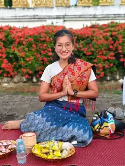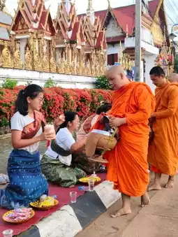 Offering sticky rice to monks is a Buddhist tradition of Lao people that has been practiced alongside Lao people for a long time. The activity starts at 5:30 every morning. The tour will prepare the alms (sticky rice + bread) for us and we can buy additional dry food ourselves. We offer alms on the side of the road. The atmosphere in the morning is not hot and not chaotic. It is quiet and peaceful.