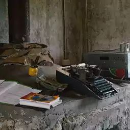 A cafe in Paksong, southern Laos, repurposed from a former power plant after the war. The cafe still retains traces of bullet holes and cracks from bombs.
