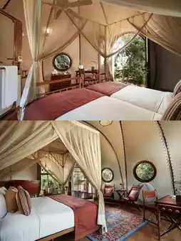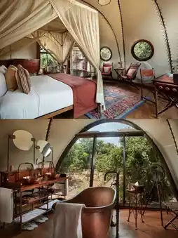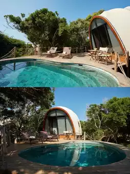 Wild Coast Tented Lodge is uniquely charming with its Cocoon Suites. These suites are not only comfortable and cozy but also full of creativity and a touch of the wild. Step inside, and you'll find every detail meticulously arranged, instantly making you feel at home. Separate bathtubs and showers, along with complimentary toiletries and a bidet, offer complete relaxation after a tiring journey. In addition, the suites are equipped with a safe, desk, and telephone with free local calls, making your stay even more convenient and worry-free.