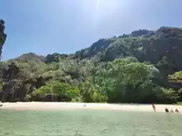 Once you're through the rock tunnel (careful, it’s a bit narrow and wavey), you’re greeted by this hidden little paradise. White sand, calm clear water, and giant cliffs hugging the whole thing like it’s protecting a secret. Hence the name, obviously.
