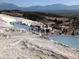 🇹🇷 Travel tips: You can visit the ruins of the ancient city of Hierapolis, stroll through the Archaeological Museum, and finally enjoy the hot spring pools of Pamukkale.