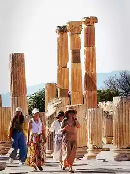 Depart from Pamukkale in the early morning and step barefoot on the snow-white calcified terraces. The hot spring water temperature is constant at 36-38℃, and the stepped pools are very cool💂.