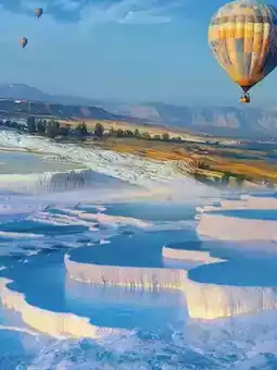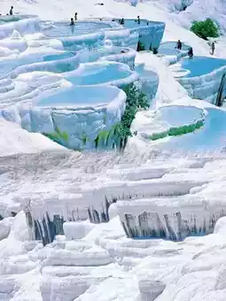 - **Highlights**: Formed by calcium-rich thermal waters, the terraces appear cotton-white from afar but are firm limestone steps up close.