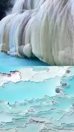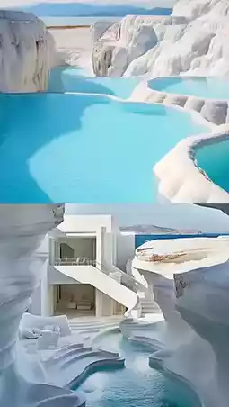 In Denizli Province, southwestern Turkey, lies a breathtaking wonder—Pamukkale. These pure white travertine terraces resemble a staircase left on earth by the gods, or a giant cotton candy blooming between the mountains.