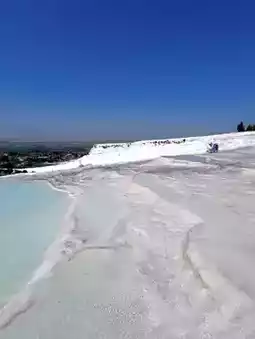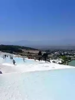 The nearest city is Denizli. Pamukkale is about an hour's drive from Denizli Airport. From the city center, you can easily reach Pamukkale by minibus or tour services.