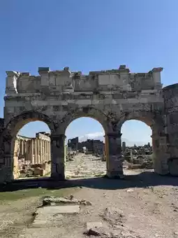 Walking on the white travertine terraces, you eventually reach the serene ruins of Hierapolis. This is the land where Romans gathered, believing in the healing powers of the hot springs and the blessings of the gods. Even as time passes, the energy of this place lingers in the air. As you stroll among the fallen columns, the aged theater, and the tranquil necropolis, you find yourself standing at a mystical boundary where the past and present intertwine.