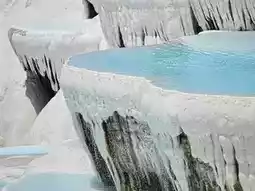 Pamukkale in Turkey, known as the "Cotton Castle," is an incredibly beautiful place. The pure white travertine terraces were formed by the forces of nature, resembling a castle!