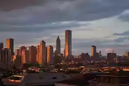 City lights gradually turn on in the distance, and the starry sky unfolds overhead.