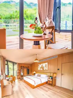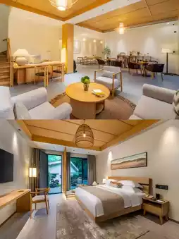 The resort features 42 spacious and bright guest rooms and suites, each equipped with a smart system🤖 Just speak to control the lights, curtains, air conditioning, and more, making your stay more convenient and comfortable. The lake-view rooms are especially stunning, with floor-to-ceiling windows framing the picturesque scenery of the lake and mountains. Lying in bed, you can enjoy the poetic views, feeling as if you've merged with nature.
