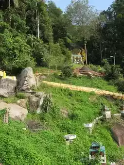 Nestled at the foot of Pangkor Island’s hillside, Fu Lin Kong Temple is a peaceful yet visually striking destination that blends religious devotion with unique attractions. The temple grounds are dotted with colorful statues, ornate carvings, and traditional Chinese architectural details.