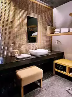 It's so comfortable here - simple and elegant room design🛏, wooden bathroom, thoughtful drinks hidden in the refrigerator🍹, snacks and welcome flowers are as gentle and cute🌸🍪
