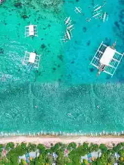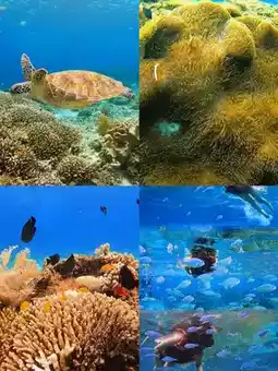 🐠 Balicasag Island Snorkeling One of the top ten dive spots in the Philippines! The underwater drop-off is 3,000 meters deep, where you can see sea turtles, jackfish storms, and coral reefs. Snorkeling here lets you encounter giant sea turtles 🤿 Recommended activities: drop-off diving and turtle watching