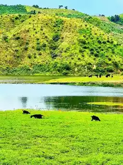 You can go fishing—bring your fishing gear and pick a cool weekday morning to sit by the shore; it will surely be very relaxing. Photography enthusiasts can also come for a stroll; there are pavilions and popular photo spots nearby. Watching the black goats on the lawn and the vast lotus ponds in the distance offers a comfortable, close-to-nature feeling.