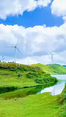 * 🌹Tianchi: Guizhou’s highest lake (2857 meters), photograph the mirror-like lake reflecting wind turbines