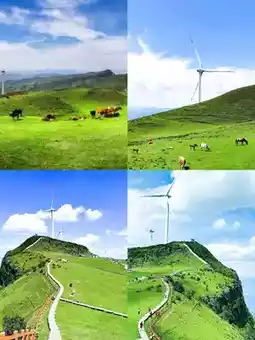 **📣 Set Off Now!** Wumeng Grassland offers vast freedom without traveling north. Drive beneath wind turbines, lounge amid drifting clouds, and revel in a high-altitude floral romance! 🌿☁️💨