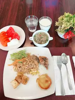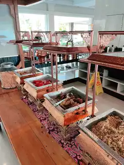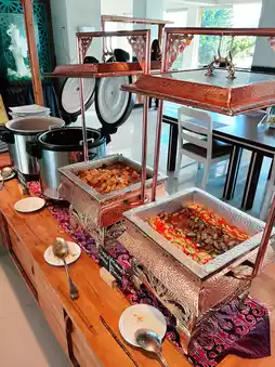 The highlight is its selection of authentic Indonesian dishes—flavorful, comforting, and freshly prepared. From nasi goreng to soto and traditional condiments, every bite brings a taste of home and local culture. The buffet may be modest, but the quality and heart in every dish shine through. Enjoy your meal with a view of the rising sun and peaceful lake, making breakfast not just a meal, but a soothing experience. It’s the perfect way to begin a relaxing day in paradise.